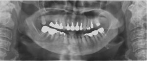 下の写真はインプラントを埋入する前のパノラマ写真です。