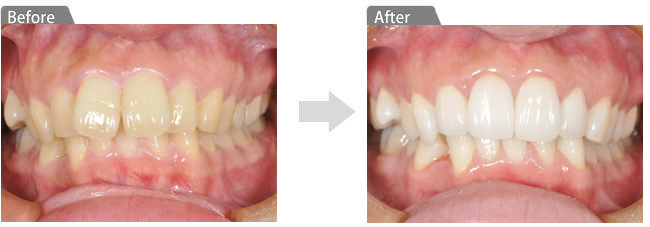 ホームホワイトニングをしてから前歯4本をオールセラミックで治療しました。